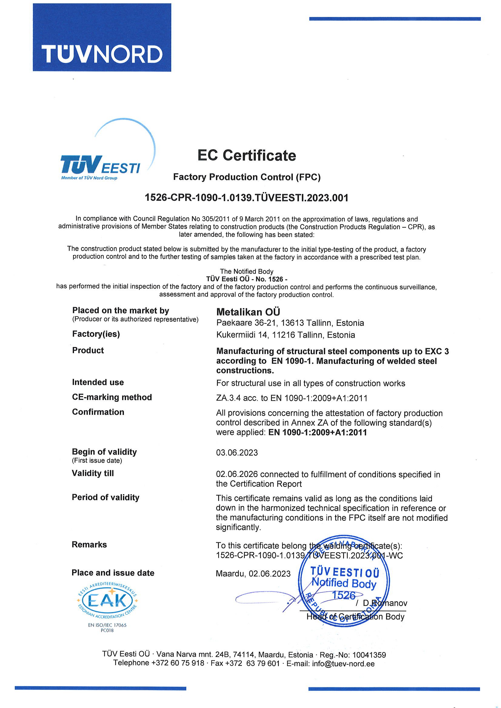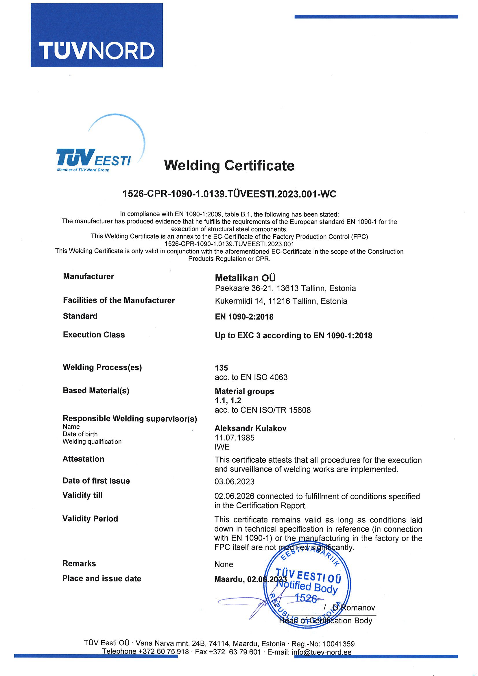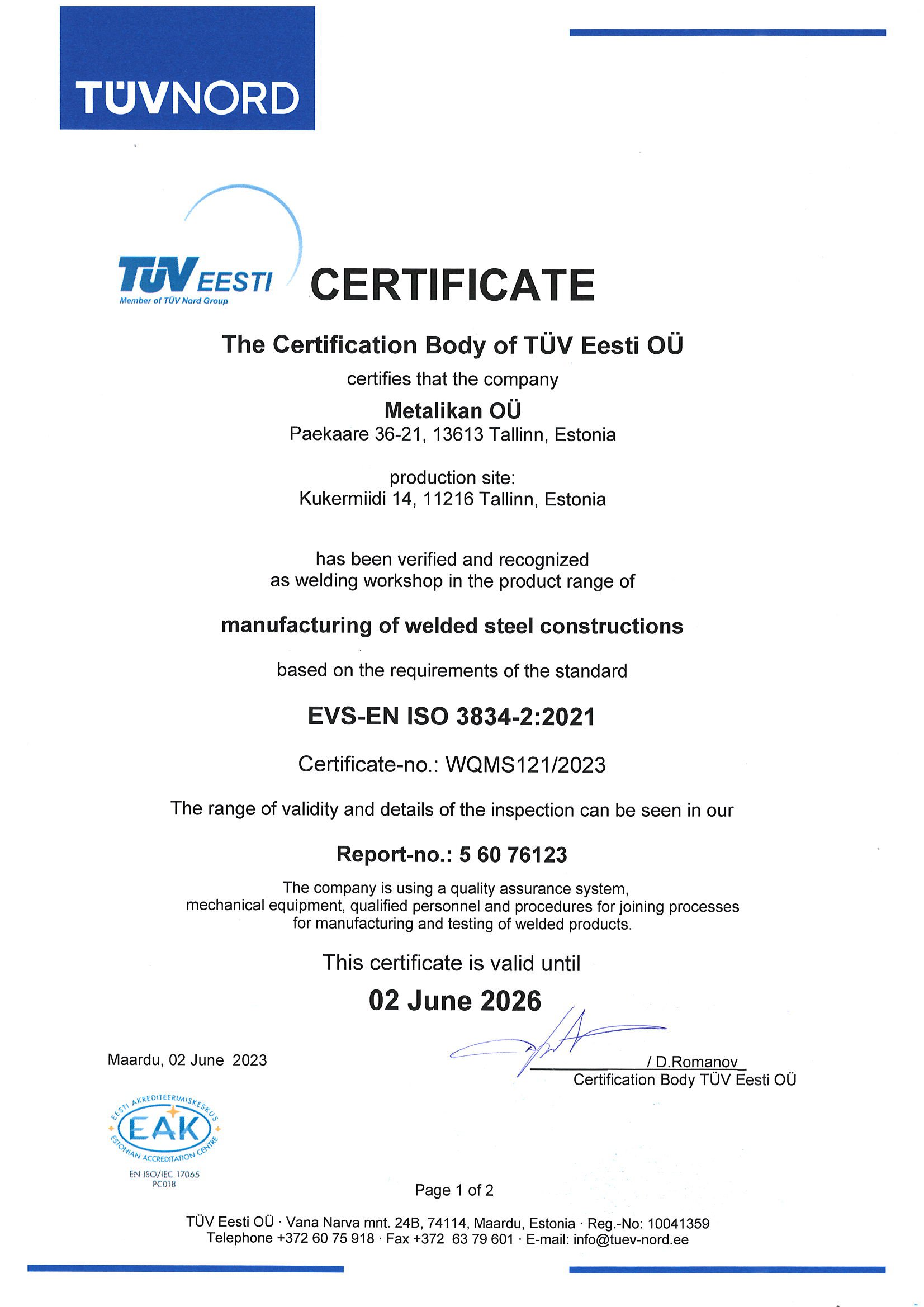 METALIKAN OÜ is an Estonian company in the field of metal production, founded in 2020. Despite its young age, the company has already established itself among Estonian clients as well as abroad. The young and experienced personnel will take on projects of any complexity at any stage, from design to final installation and assembly.