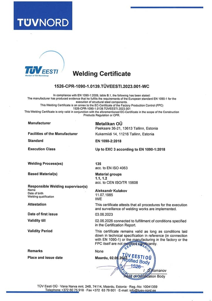METALIKAN OÜ is an Estonian company in the field of metal production, founded in 2020. Despite its young age, the company has already established itself among Estonian clients as well as abroad. The young and experienced personnel will take on projects of any complexity at any stage, from design to final installation and assembly.